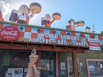 Sparky’s Burgers, BBQ and Shakes -Combo #1 World Famous . . . Sparky’s is located in Hatch, NM, the “Chile Capital of the World”. When you see “Hatch” green chile in your grocery stores in August, it’s not a variety of chile, but rather the area around Hatch, NM where it is grown. Labor day weekend is the annual Hatch Chile Festival where you can taste the best chile in the world along with arts & crafts, live music and more. Sparky’s burgers have the aroma of flame broiled burgers and comes with cheese and green chile. They have sliced onions and pickles on a counter to add to your burger but if you like lettuce and tomato you’re out of luck. I love lettuce and tomato on a burger so this is my only criticism and why this burger landed at #4, but that is only my opinion. The green chile had the right amount of heat and taste along with the perfectly grilled burger. Joe loved it and would have ranked it higher on his list. The wedge fries are perfectly seasoned and crisp on the outside. I have to say these fries are the ultimate companion to the ultimate burger. My top 4 picks were the hardest to rank; any of the last 4 burgers could be #1.