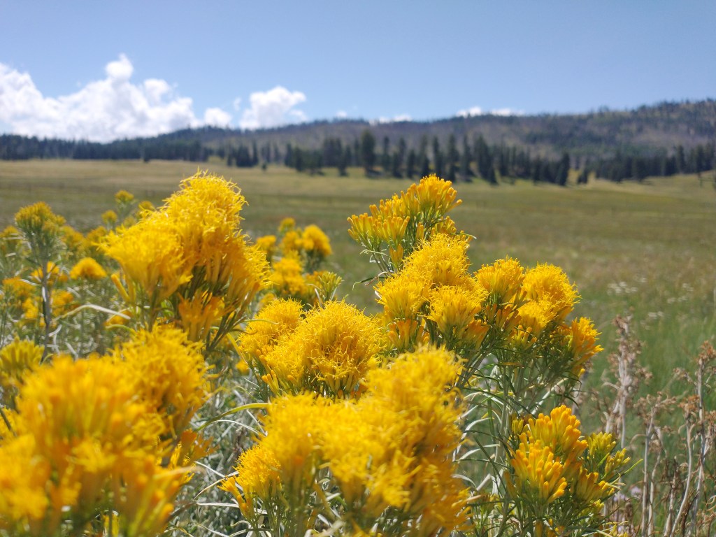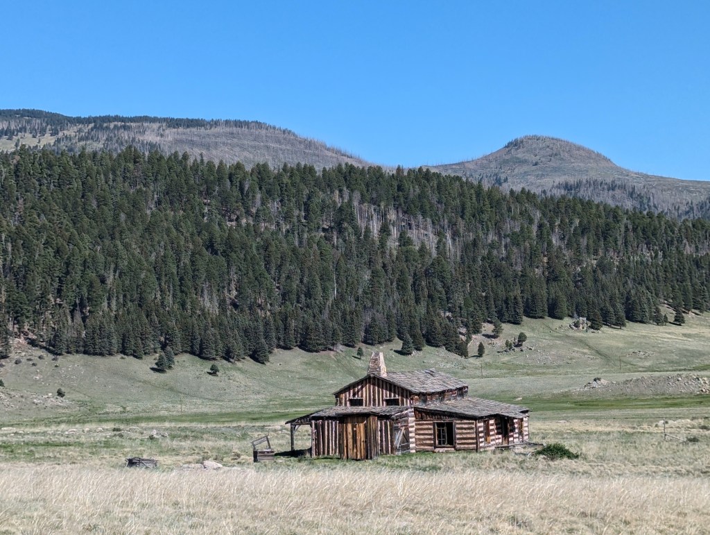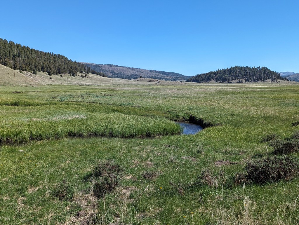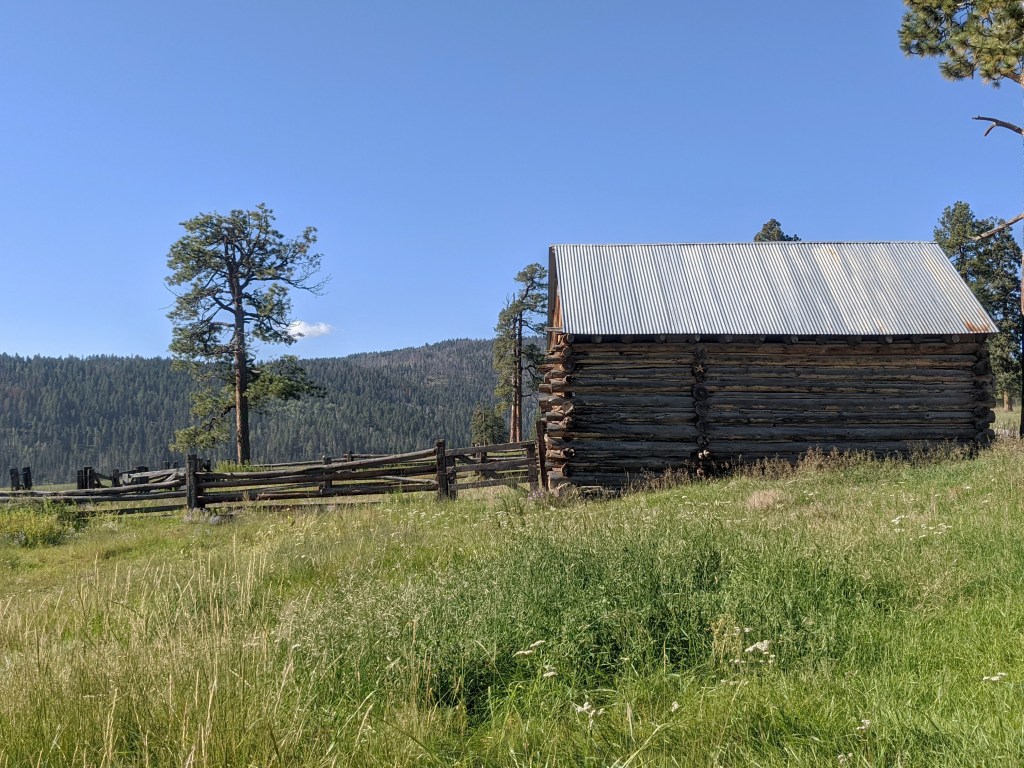 The Valles Caldera is the result of a volcanic eruption that happened over a million years ago which created a volcanic depression in the earth approximately 14 miles wide in diameter. Located in the Jemez Mountains of New Mexico, it is now a beautiful valley known for it’s huge grassland meadows, the East Fork Jemez River and hiking trails. It is also a wildlife preserve and home to the 2nd largest elk population in New Mexico. You might see prairie dogs that pop up along the road to the Valle Grande entrance station or a coyote strolling through the grassy meadow. There are numerous hiking trails in and around the preserve but if you want to hike or backpack in the backcountry you will need a pass or a code to drive to the backcountry trails. They only allow a few vehicles in the backcountry per day. Check in with the entrance station or reserve a pass online. Over the past 5 years we’ve visited the Valles Caldera numerous times and each time is a different experience. Sometimes it’s sunny, sometimes foggy or low lying clouds in the valley. Depending on the rainfall, the meadow can be gorgeous green or a dull wheat color. We love to go in late Spring and early Summer when the wildflowers are in bloom. This is one of our favorite places to get away. Here’s a fun fact: If you’ve ever seen the tv show “Longmire”, you might recognize the cabin and stables where Walt Longmire’s ranch scenes were filmed. While the series took place in Absaroka County, Wyoming, it was actually filmed in NM. The Sherriff office and town scenes were filmed in Las Vegas, NM. I hope you will enjoy some of our adventures over the past few years exploring the Valles Caldera National Preserve.