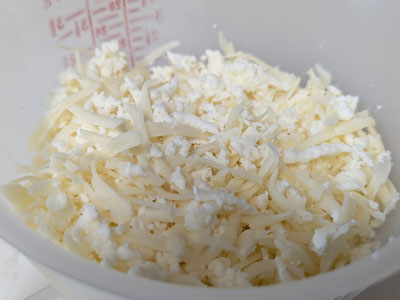 Sprinkle a portion of the grated mozzarella mix over the cheese filling.