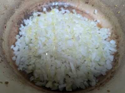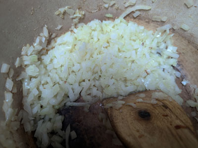 Saute the onion and garlic over medium heat for a few minutes as they sweat it out and become translucent.