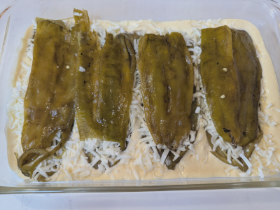 Place the remaining 4 green chiles over top of the cheese.