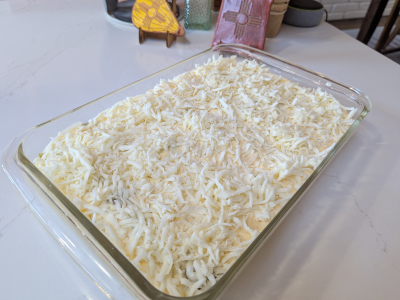 Oaxaca cheese is a really good melting cheese. It’s my choice for stuffing chiles and many New Mexican recipes. Grate approximately 16 ounces which is about 1 and 1/2 packages.