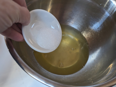 Pour the salt into the egg whites.