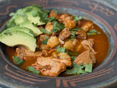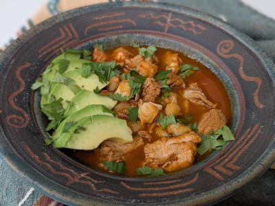 This year I am recognizing New Mexico’s traditional meals that are celebrated around the holidays. Whether it’s Thanksgiving, Christmas or New Years, posole represents the celebration of life’s blessings. It’s a pot of hearty stew made of pork or chicken with hominy and red or green chile. It’s one of those things I look forward to every holiday season. The pork is seasoned, then simmered in broth for several hours until the pork begins to fall apart when stirred. I made the red chile base from dried NM Red and Guajillo chile pods which makes a vibrant red sauce which is then added to the pot of stewed pork and hominy. It’s tastes like comfort in a bowl. It’s enough to feed a crowd or can be frozen to enjoy another day. Whatever your traditions, I hope you enjoy a wonderful holiday season!