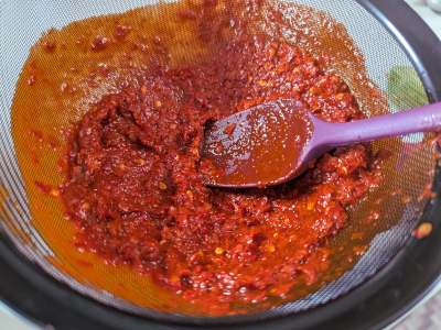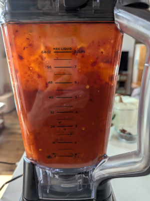 This made approximately 2 1/2 cups of red chile sauce. It’s best to taste the sauce after its strained and add salt if needed.