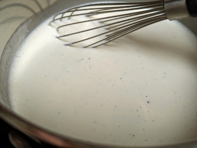 Strain 2 cups of heavy cream. Sometimes there are a few curdled butterfats in the cream and straining it will leave a silky creamy texture.