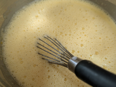 Meanwhile whisk together the egg yolks, sugar and salt.