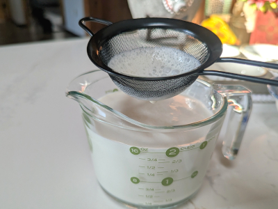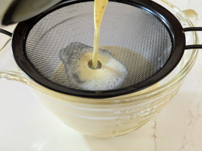 Strain 2 cups of heavy cream. Sometimes there are a few curdled butterfats in the cream and straining it will leave a silky creamy texture.