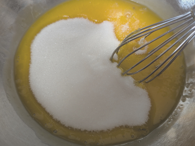 Meanwhile whisk together the egg yolks, sugar and salt.