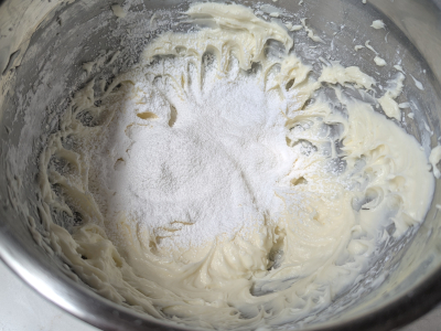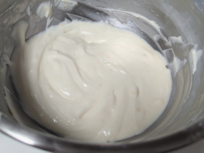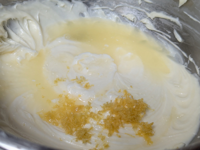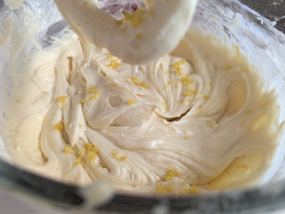 Once creamy, add the zest and lemon juice. Beat on low until it is incorporated.
