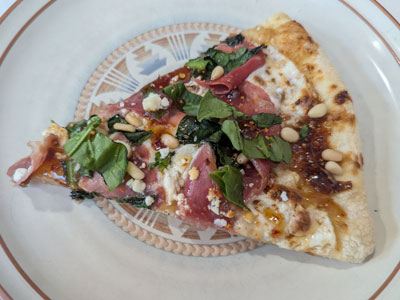November came in with a bang and brought us colder mornings with freezing temperatures along with our first Winter storm of the season. When the cold weather sets in, I am inspired to crank up the oven and bake pizza. This pizza has always intrigued me and got me to wondering if it would taste as good as it sounds. Turns out, it exceeded my expectations and I plan to put it on the pizza rotation a lot more often. Joe also raved about it, he would have gladly had another slice or two, but we are trying to eat healthier with smaller entree portions while adding more salad to our diet. I worried the fig jam would be too sweet but in fact, the prosciutto balances it out resulting in salty and sweet flavors combined with savory spinach, goat cheese and pine nuts. It really is an incredible combination of flavors.