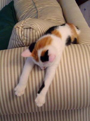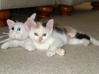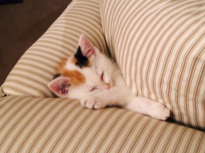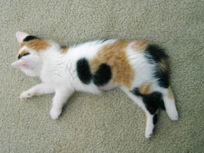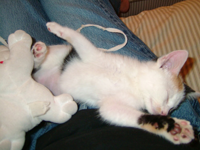 Tired after playing with the pound kitty. She’s grown a little bigger than the pound kitty now.