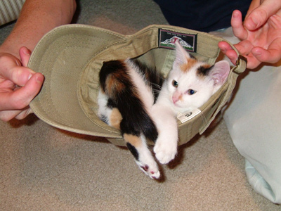 She used Josh’s work cap as a place to curl up when she was a wee lass.