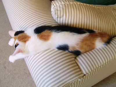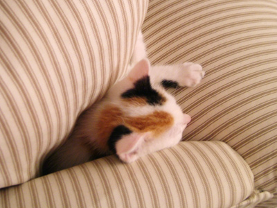 The old couch with all the pillows . . . She would crawl into a corner, fall asleep and inevitably slide in between the couch and pillows.