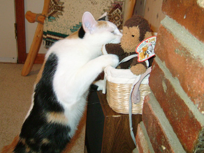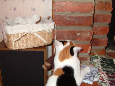 She would steal the kids beanie babies so I got a basket and filled it with toys just for her. It was only fun if she could sneak over without getting caught!