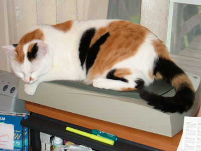 The scanner also makes a comfy bed if you get kicked off the monitor.