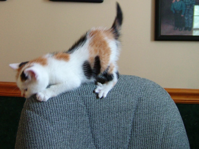 And hop on the back of my computer chair. If I was sitting there she would be playing with my hair!