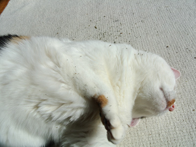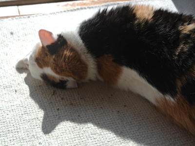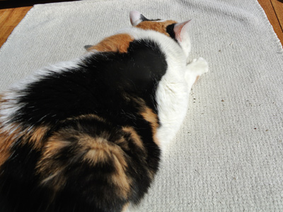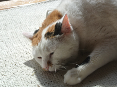 A bit older, a bit wiser . . . these days her first order of business in the morning is to roll over in front of me, which means I’m ready for my full body massage! She practically demands it, first rolling on one side then it’s a belly rub, then the other side. Oh and don’t forget the head rub, it’s mandatory that I scratch her head and ears and don’t forget under the chin. It’s like physical therapy for a cat.