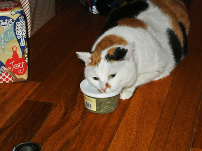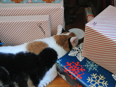 So for Christmas last year I hid a new container filled with her favorite Catnip just for her in the middle of all the packages . . . and guess what