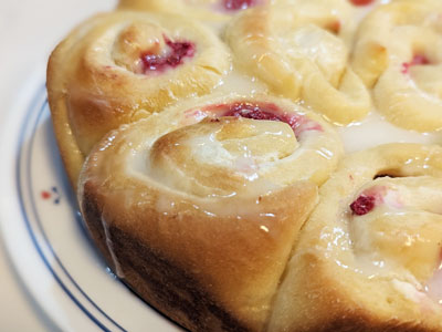 Raspberry Cream Cheese Sweet Rolls with a Lemon Glaze