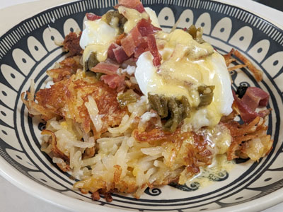 Hatch Green Chile Benedict with Fry Bread
