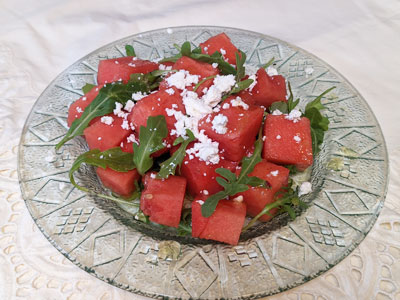 Watermelon Arugula Salad with Honey Lime Dressing |